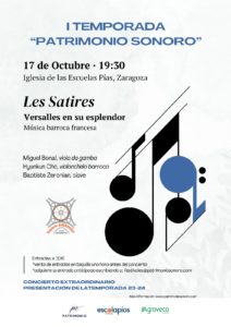 Nos complacemos en informaros del CONCIERTO EXTRAORDINARIO que se celebrará el próximo martes, 17 de octubre, a las 19:30 horas en la Iglesia de las Escuelas Pías. Avenida César Augusto.