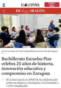 Bachillerato Escuelas Pías celebra 25 años de historia, innovación educativa y compromiso en Zaragoza